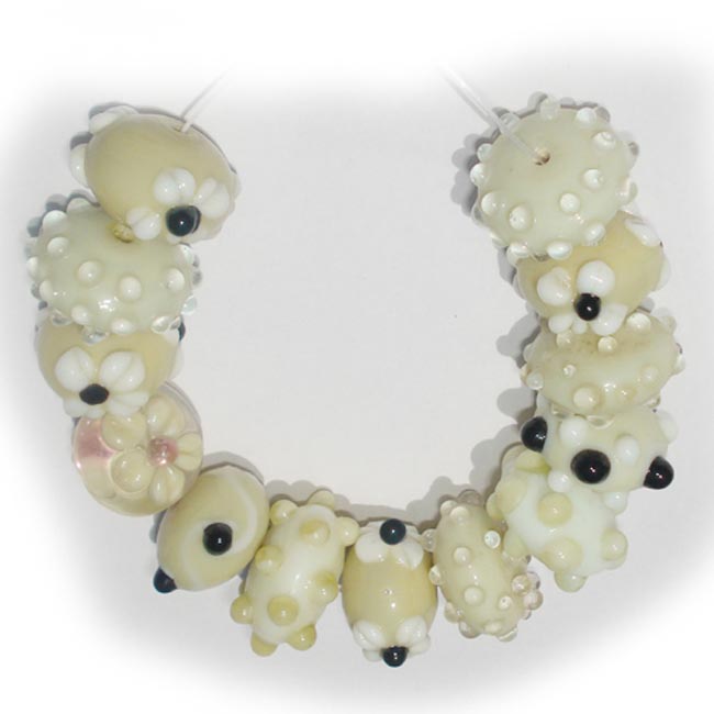 Lampwork fancy glass beads 13 pieces strung in a thread,