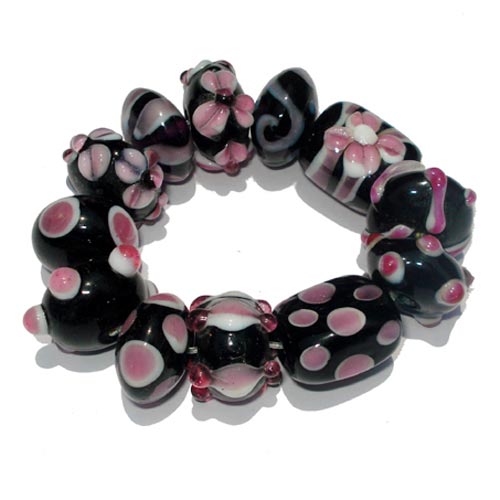 Lampwork fancy glass beads 12 pieces strung in a thread, Please Note : This price is for 1 set price and minimum order quantity is 25 set.