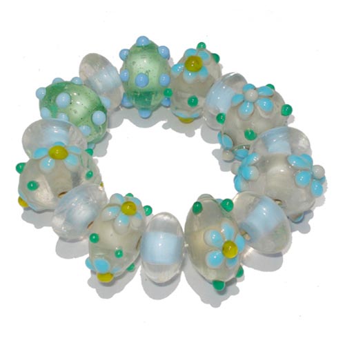 Google+ Lampwork fancy glass beads 15 pieces strung in a thread,