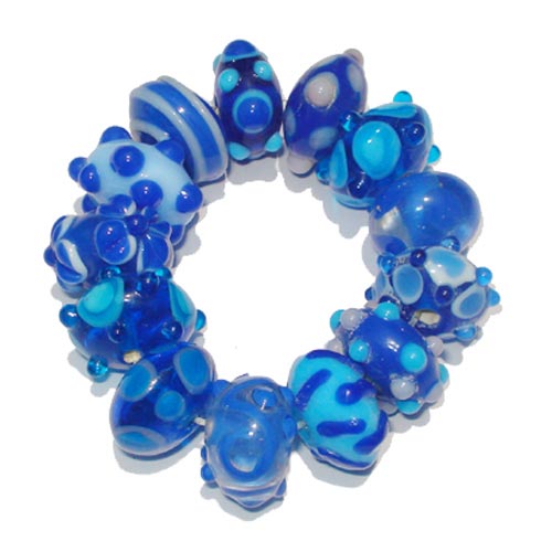 Google+ Lampwork fancy glass beads 13 pieces strung in a thread,