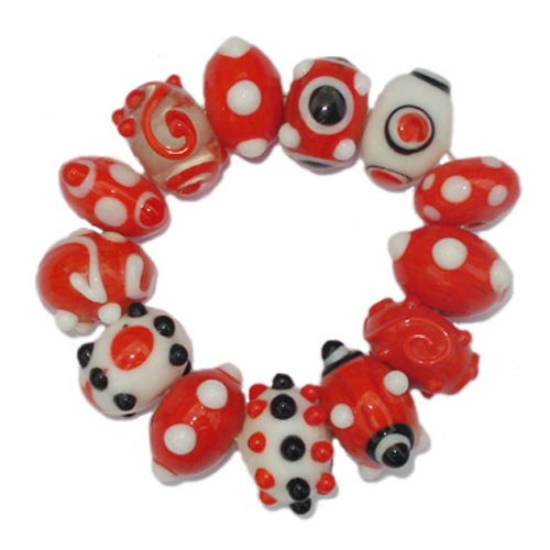 Google+ Lampwork fancy glass beads 13 pieces strung in a thread,