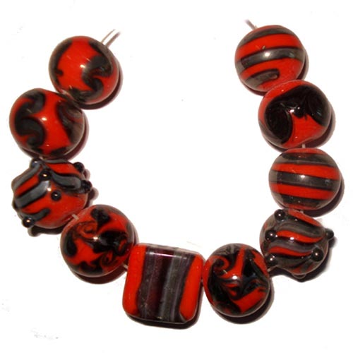 Lampwork fancy glass beads 10 pieces strung in a thread,