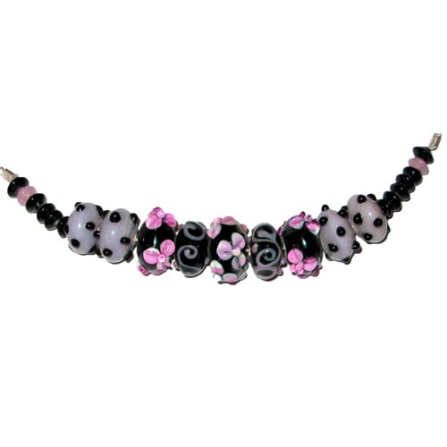 Lampwork fancy glass beads 10 pieces strung in a thread,