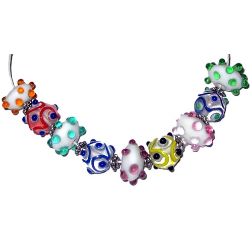 Google+ Lampwork fancy glass beads 10 pieces strung in a thread,