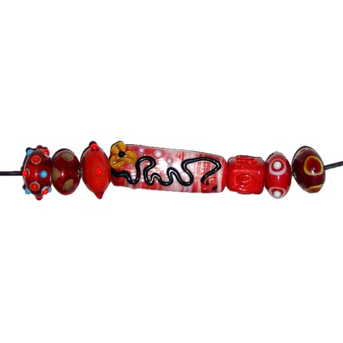 Lampwork fancy glass beads 10 pieces strung in a thread,