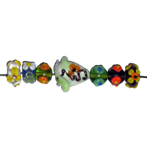 Lampwork fancy glass beads 10 pieces strung in a thread,
