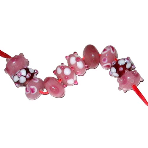 Lampwork fancy glass beads 10 pieces strung in a thread,