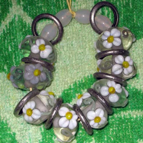 Lampwork fancy glass beads 10 pieces strung in a thread,