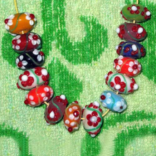 Lampwork fancy glass beads 10 pieces strung in a thread,