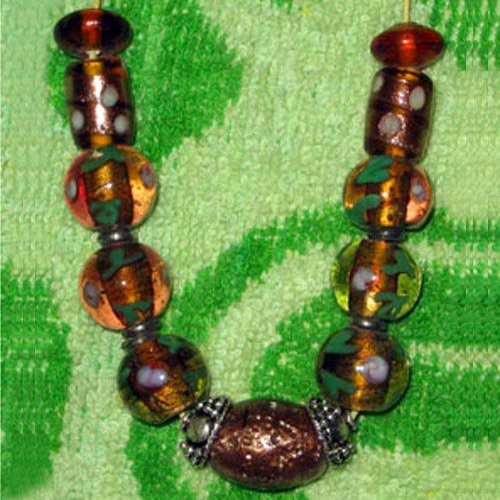 Lampwork fancy glass beads 10 pieces strung in a thread,