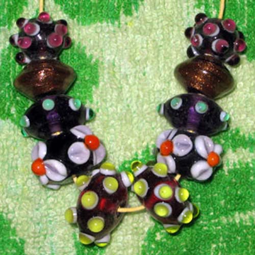 Lampwork fancy glass beads 10 pieces strung in a thread,